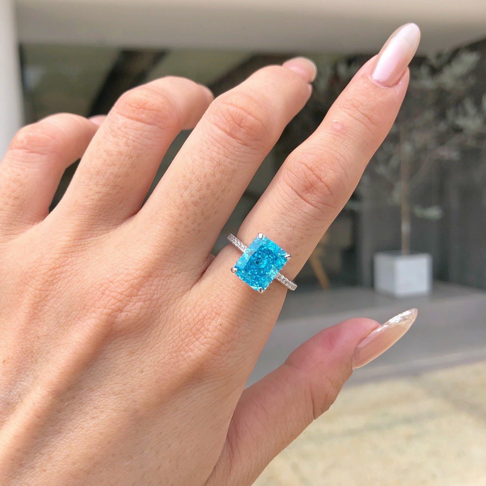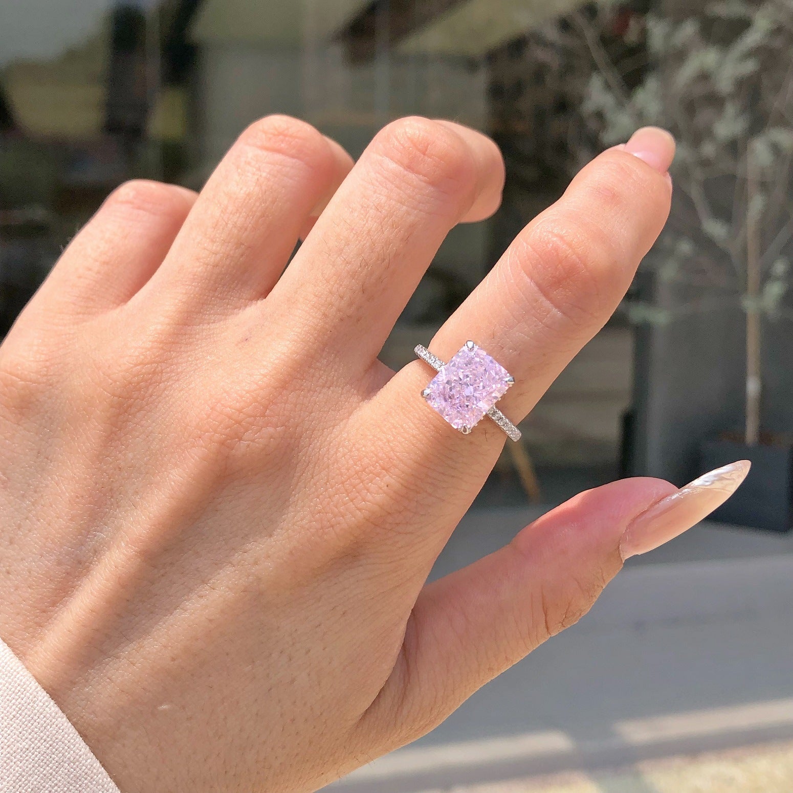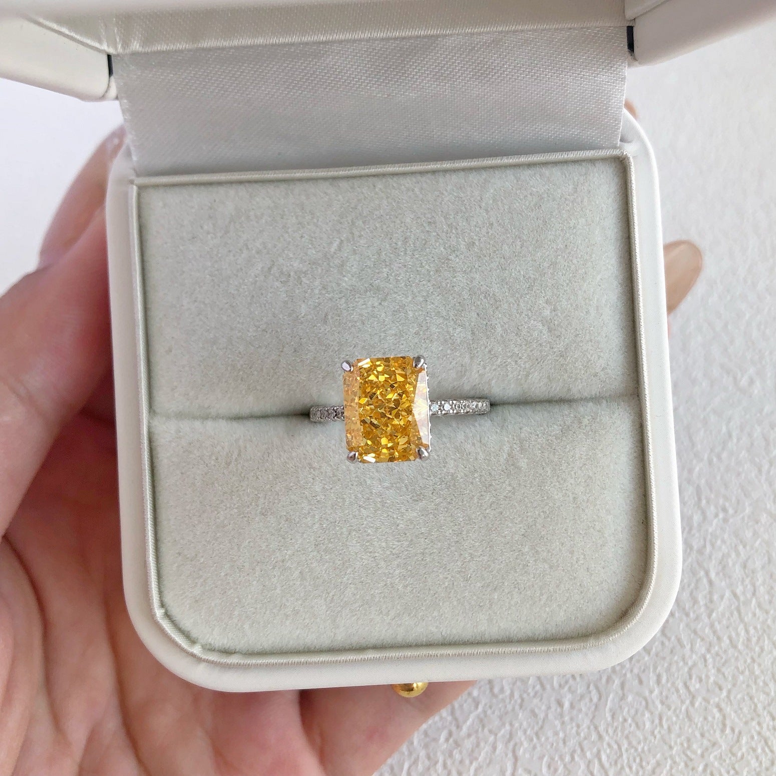 925 Sterling Silver High Carbon Diamond Colored Zircon Super Flash Wedding Ring